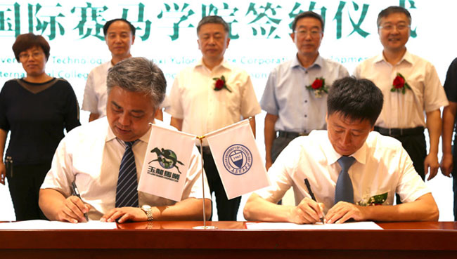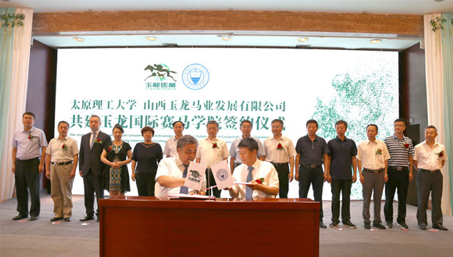 太原理工大學(xué)玉龍國際賽馬學(xué)院是太原理工大學(xué)與山西玉龍馬業(yè)發(fā)展有限公司,本著優(yōu)勢互補(bǔ)、強(qiáng)強(qiáng)聯(lián)合的原則共建的培養(yǎng)賽馬業(yè)和馬術(shù)界高端管理人才辦學(xué)機(jī)構(gòu)。2018年8月,雙方簽訂了共建“玉龍國際賽馬學(xué)院”合作協(xié)議,為中國馬業(yè)和教育領(lǐng)域,雙雙填補(bǔ)了國內(nèi)空白。2018年9月雙方在玉龍馬業(yè)舉辦了掛牌儀式。